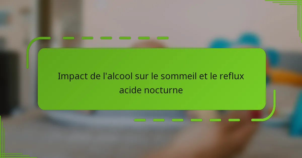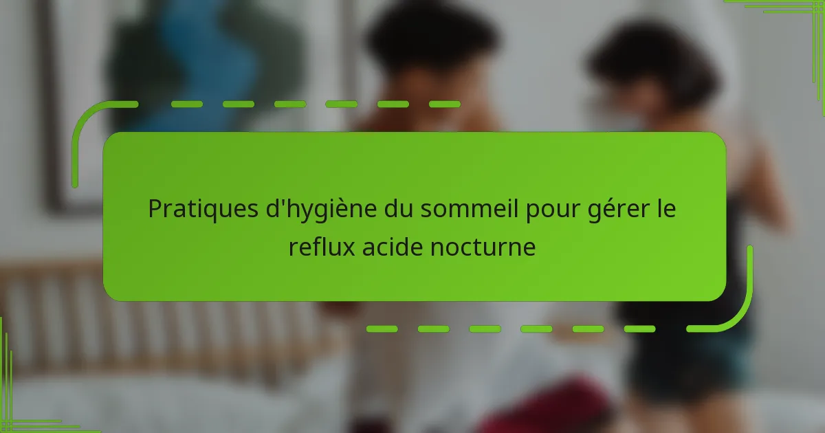 Gérer le reflux acide nocturne nécessite souvent une combinaison d’ajustements de mode de vie. Les stratégies clés incluent la modification des habitudes alimentaires, le changement de positions de sommeil et l’adoption d’autres pratiques bénéfiques pour réduire efficacement les symptômes.