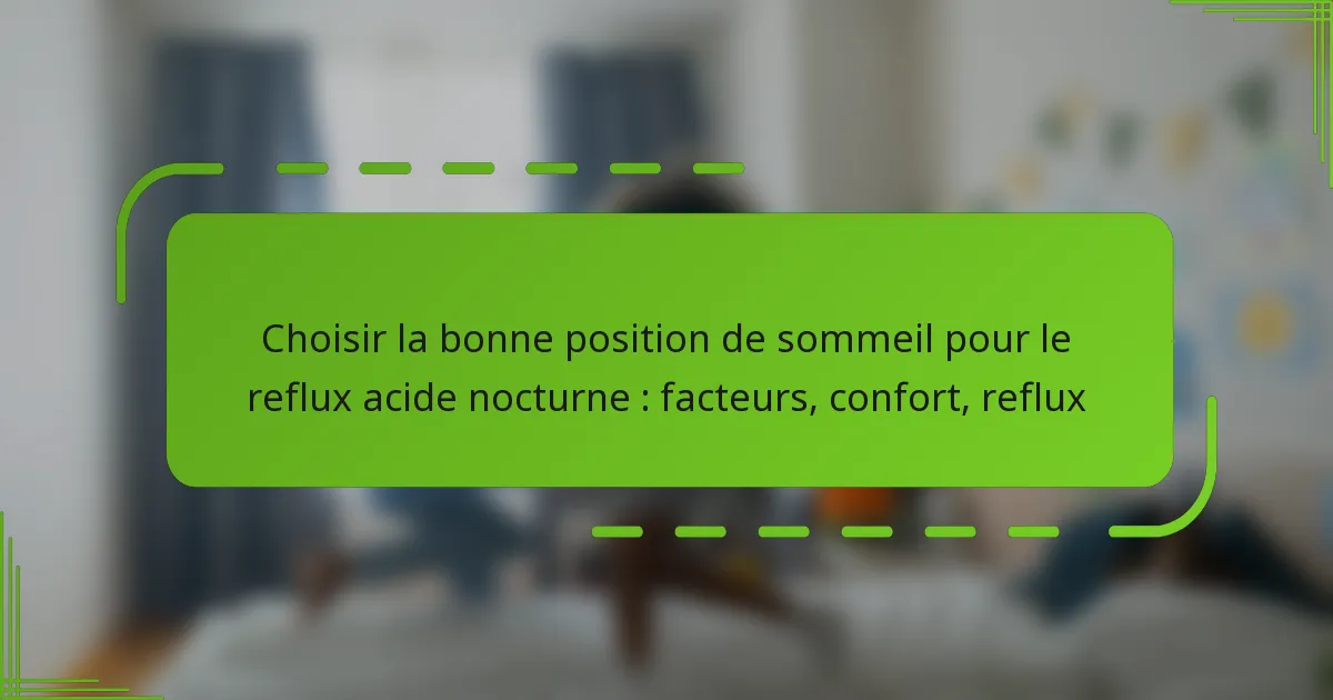 Quels sont les facteurs clés influençant la position de sommeil pour le reflux acide nocturne ?