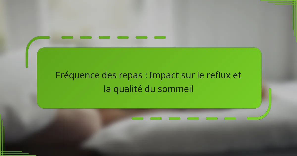 Quelles stratégies de fréquence des repas sont les meilleures pour le reflux et le sommeil ?